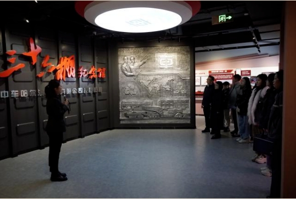 在讲解员的带领下,师生参观了厂史馆“红色历史展区”五个展厅,收藏、陈列历史图片、文物、展品共600余件;追溯了这个大厂的百年历史,通过不同历史发展时期的照片和文物,了解了中国早期工人运动史,新中国成立后毛泽东主席视察的第一家工业企业;洗礼了劳模精神、劳动精神、工匠精神;感受了百年来,一代代哈车人坚定不移听党话、跟党走,始终铭记伟人嘱托,用实际行动诠释了产业报国的底气、为国争光的胸怀。