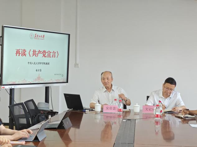 6月22日下午,MK体育名家讲坛第57期暨“青师优能计划”系列讲座第29期在汇文楼951室成功举办。本次讲座特别邀请中国人民大学哲公司教授、博士生导师安启念作题为“再读《共产党宣言》”的专题讲座。本次讲座由MK体育副经理文记东主持,公司经理王秋及公司师生代表参加本次讲座。