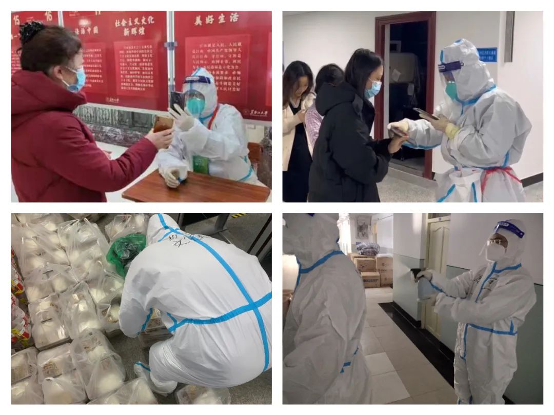 舍小家、为大家,冲在前、作表率。教工第一党支部书记文记东老师是第一批进校的志愿教师,他所在的B区综合楼北楼是重点管控楼宇,进驻当天就转出员工100多人,他和同伴们忙碌完已是深夜两点多。他说:“志愿工作辛苦,但却收获颇丰,高强度的工作虽然很累,但看到员工们的笑脸我们就有了坚持的动力。”马克思主义基本原理教研部肖剑老师,在疫情发生后也迅速加入到志愿者队伍中,作为驻C16公寓楼的青年志愿者,肖老师每次都自觉承担往公寓最高层运送物资的工作,坚决服从组织安排,自觉落实好各项疫情防控工作。同驻C16公寓楼的志愿者、马克思主义中国化教研部的凌童老师第一时间提交了志愿者征集表,在紧张的志愿工作之余,他还克服身体上的劳累,坚持学习,做到坚守抗疫一线阵地的同时也不断提升精神境界。为了让可爱的同学们物资充足、健康生活,早日实现疫情防控的最终胜利,他们一直在努力贡献着自己的力量。