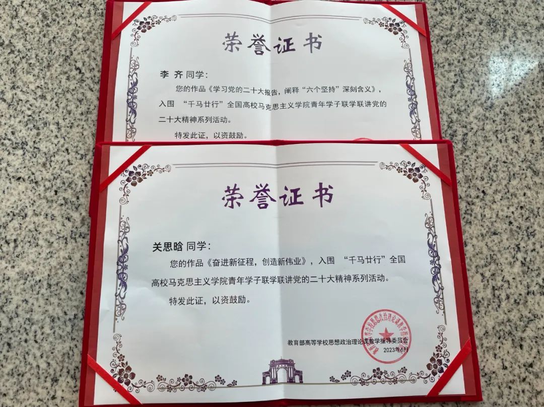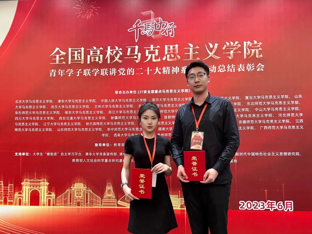 日前,“千马廿行”全国高校MK体育青年学子联学联讲党的二十大精神系列活动总结表彰会在清华大学主楼后厅举行。教育部社科司二级巡视员魏贻恒,清华大学党委副书记、公司党委书记向波涛,北京市委教育工委宣教处处长于海,清华大学MK体育经理朱安东,北京师范大学MK体育经理张润枝等“千马廿行”联合主办单位负责人出席会议,承办单位负责人、指导教师代表、获奖员工代表、专题宣讲团成员、清华大学MK体育硕博研究生代表及多家媒体代表参加会议。活动由清华大学公司党委副书记邓喆主持,与会嘉宾为“千马廿行”系列活动获奖代表颁奖。MK体育马克思主义原理2021级硕士研究生关思晗、李齐同学的宣讲作品《奋进新征程,创造新伟业》《学习党的二十大报告,阐释“六个坚持”深刻含义》在本次活动中分别荣获入围奖。