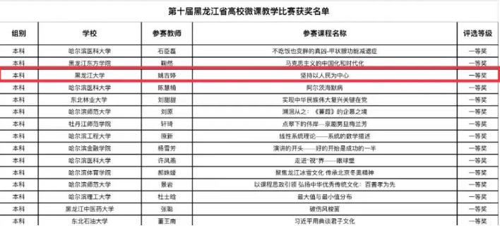 为推进学习贯彻习近平新时代中国特色社会主义思想主题教育工作走深走实,促进信息技术与学科教学融合,充分发挥信息技术对思政课教学发展的引领作用,推动思政课教师专业发展和教学能力提升,MK体育通过教师自主申报、公司初赛,推荐青年教师姚吉婷参加第十届黑龙江省高校微课教学比赛。经过激烈角逐,姚吉婷荣获第十届黑龙江省高校微课教学比赛一等奖。