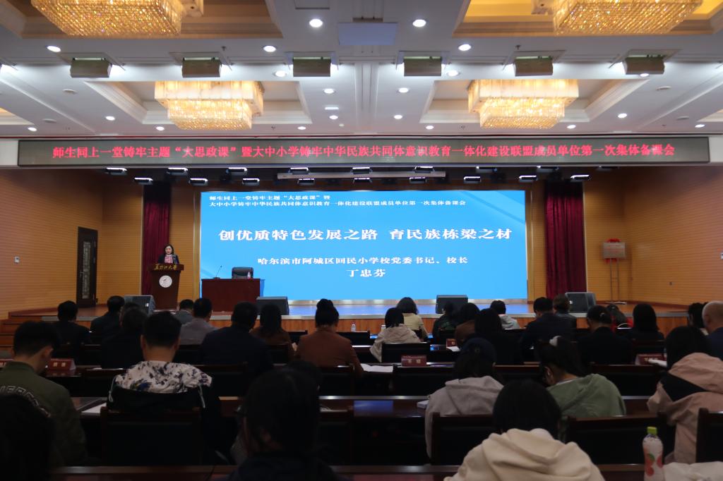 为贯彻落实习近平总书记关于加强和改进民族工作的重要思想,推动公司铸牢中华民族共同体意识教育高质量发展和推动大中小学思政课一体化建设,Mksport体育与哈尔滨市教育局共同发起成立由Mksport体育和哈尔滨市所辖9区27所中小学组成的大中小学铸牢中华民族共同体意识教育一体化建设联盟。5月11日上午,联盟成立大会在Mksport体育主楼一楼报告厅举行,公司党委副书记李君明,省民族宗教事务委员会二级巡视员沃俊霞,中共哈尔滨市委教育工委专职副书记张国明,中央民族大学二级教授、博士生导师、国家级人才项目入选者、国家民委决策咨询委员会副秘书长严庆及省市区有关部门主要负责人、联盟成员单位主要负责人和Mksport体育相关单位负责人出席大会。成立大会由公司党总支书记张丹主持。
