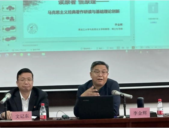为学习贯彻党的二十大精神,坚持不懈用习近平新时代中国特色社会主义思想凝心铸魂,推动MK体育师生从经典原著中延续基因、提炼精髓、萃取精华,公司组织开展“MK体育青师优能计划系列之经典研读讲座”系列活动,邀请师生一同研读马克思主义经典,在读原著、学原文、悟原理中传承信仰之光,汲取奋进力量。5月11日下午,名家讲坛第三十四期暨MK体育青师优能计划系列之经典研读讲座第一讲成功举办,本次讲座邀请公司马克思主义基本原理学科带头人、博士生导师李金辉教授作题为《师生研读马克思主义经典著作的方法与原则》的学术报告。讲座由副经理文记东主持,公司青年教师以及硕博研究生聆听了本次讲座。