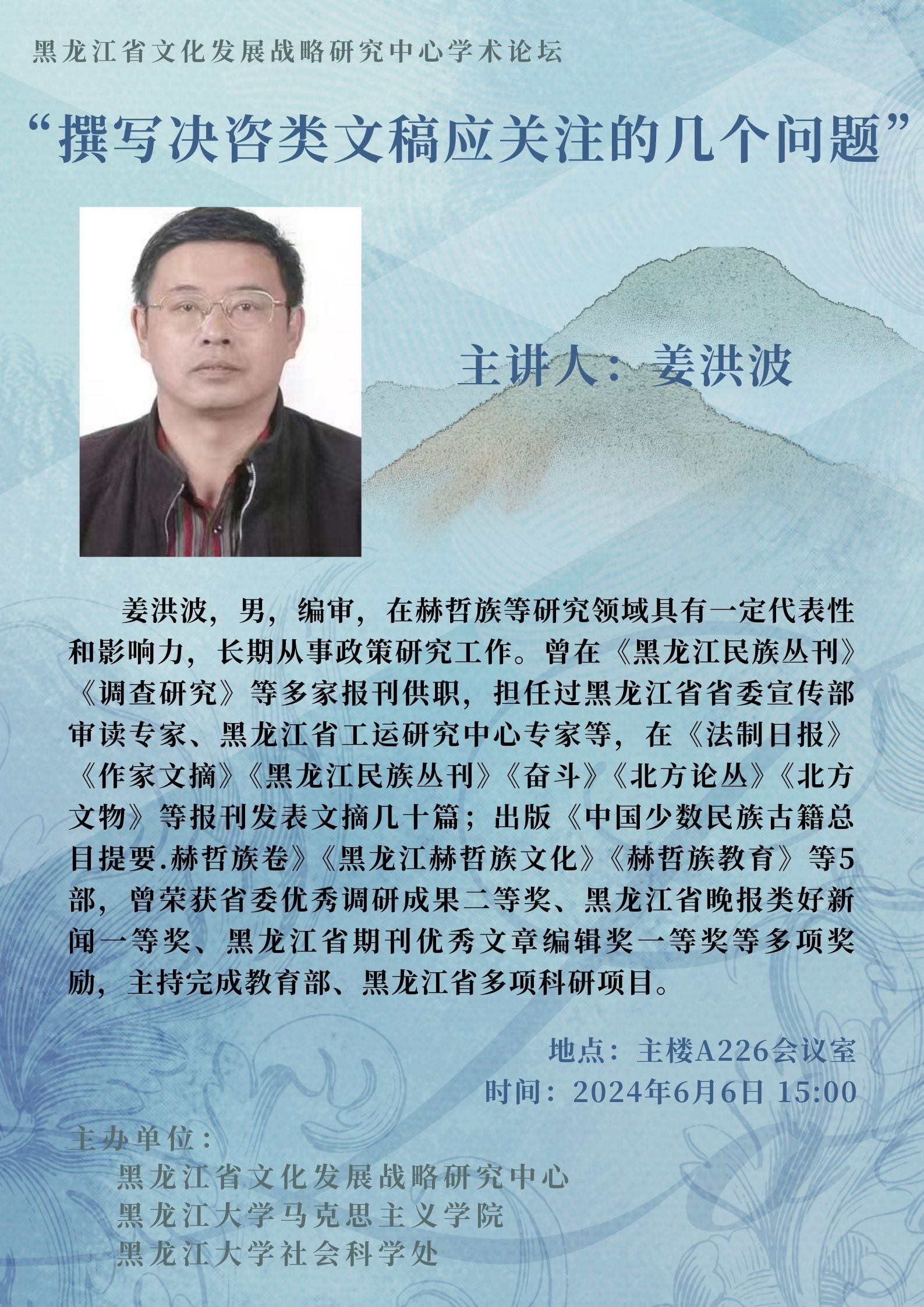 黑龙江省文化发展战略研究中心“撰写决咨类文稿应关注的几个问题”讲座预告