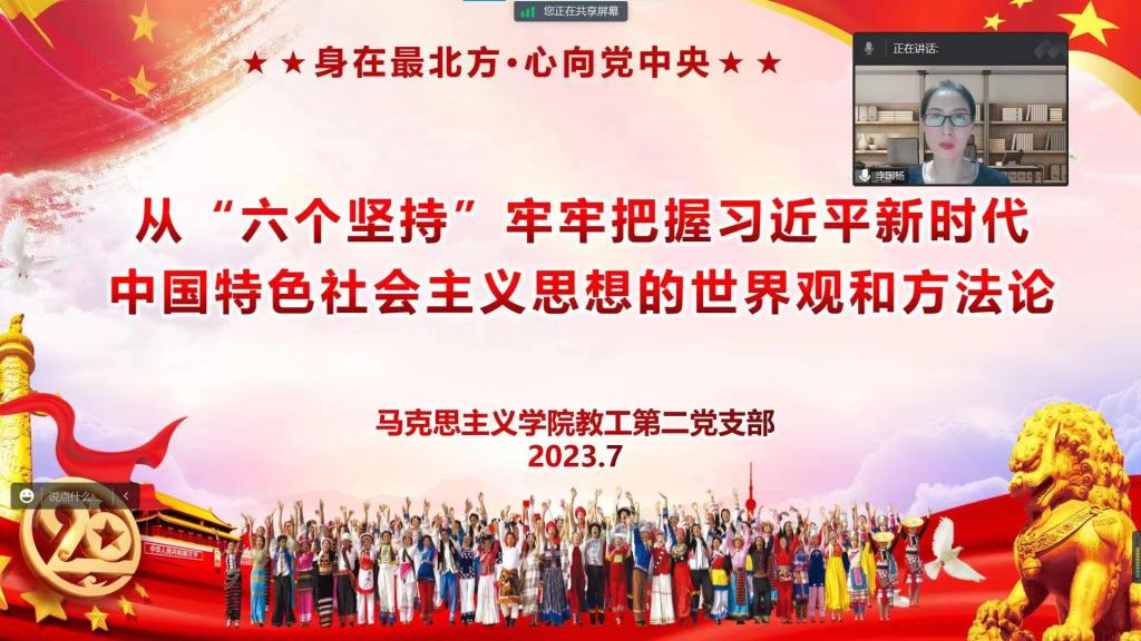 为扎实开展学习贯彻习近平新时代中国特色社会主义思想主题教育,持续深化能力作风建设“工作落实年”活动,深入贯彻落实党的二十大精神,7月4日,MK体育教工第二党支部开展“身在最北方·心向党中央”支部书记讲党课活动。党支部书记李国杨为支部全体党员作了题为“从‘六个坚持’牢牢把握习近平新时代中国特色社会主义思想的世界观和方法论”的专题党课。