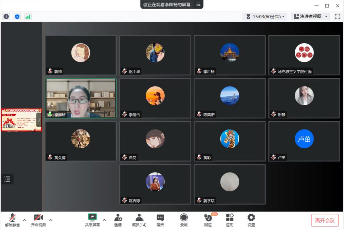 李国杨结合近期的理论学习,分享了自己对学习贯彻党的创新理论的理解和思考。李国杨指出,“六个坚持”是内在统一、相互贯通的有机整体,深刻揭示了习近平新时代中国特色社会主义思想的理论品格和鲜明特质,对于我们深入理解把握党的创新理论具有重要意义。坚持不懈用习近平新时代中国特色社会主义思想凝心铸魂,要求思政课教师全面准确把握“六个坚持”的科学内涵和精神实质,在思政课教学中努力把“六个坚持”讲深讲透讲活,推动新时代高校思政课高质量发展。