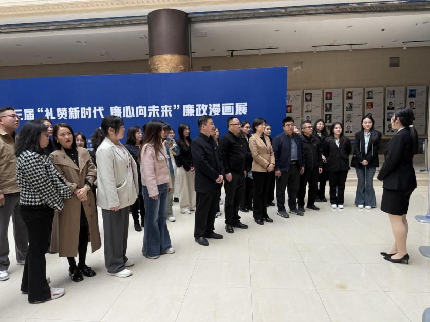 展览以漫画艺术为媒介,生动诠释新时代廉政文化的深刻内涵。作品紧扣全面从严治党要求,通过艺术化表达传递党规党纪的严肃性,既有对廉洁从政先进典型的礼赞,也有对违纪违规行为的警示。展览以通俗易懂、寓教于乐的形式,将抽象的纪律条文转化为鲜活的教育素材,让师生在观展中深化对中央八项规定精神的理解,进一步强化“知敬畏、存戒惧、守底线”的思想自觉。参观过程中,师生们驻足交流、深入思考,结合工作实际探讨如何将纪律要求转化为日常行动准则,切实做到防微杜渐、警钟长鸣。