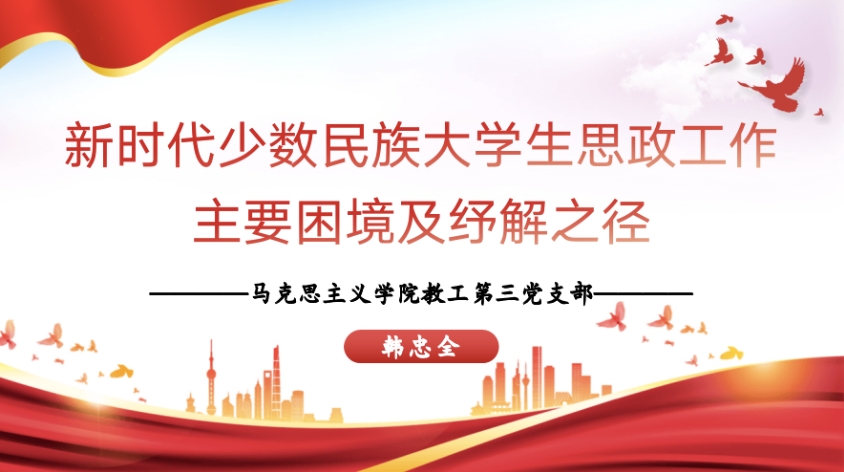 韩忠全从实践层面讲解了新时代少数民族老员工思政工作的相关内容,从新时代少数民族老员工思政工作的主要困境和纾解之径两个方面阐释了自己独到的见解。他认为,做好新时代少数民族老员工思想政治教育工作,是贯彻落实习近平总书记新时代民族工作的重要内容,对于进一步铸牢中华民族共同体意识具有现实和深远意义。当前少数民族老员工思政工作面临一些现实困境,因此,对少数民族老员工进行思想政治教育,要结合员工的学习和生活实际进行精细化教育、管理和服务;在高校思想政治教育内容中,要强化“五个认同”,这是促进民族团结的前提和保证。