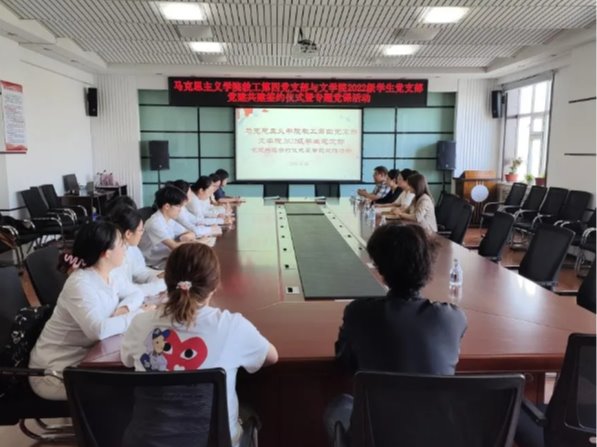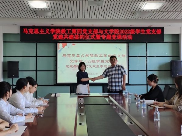 为创新基层党建工作载体,共同提升基层党建工作新格局,打造具有公司特色的党建品牌,6月25日下午,MK体育教工第四党支部与文公司2022级员工党支部在汇文楼750会议室举行党建共建签约仪式暨专题党课活动。MK体育教工第四党支部书记康宇及支委成员、文公司2022级员工党支部全体党员参加活动。会议由文公司2022级员工党支部书记关婧雯主持。