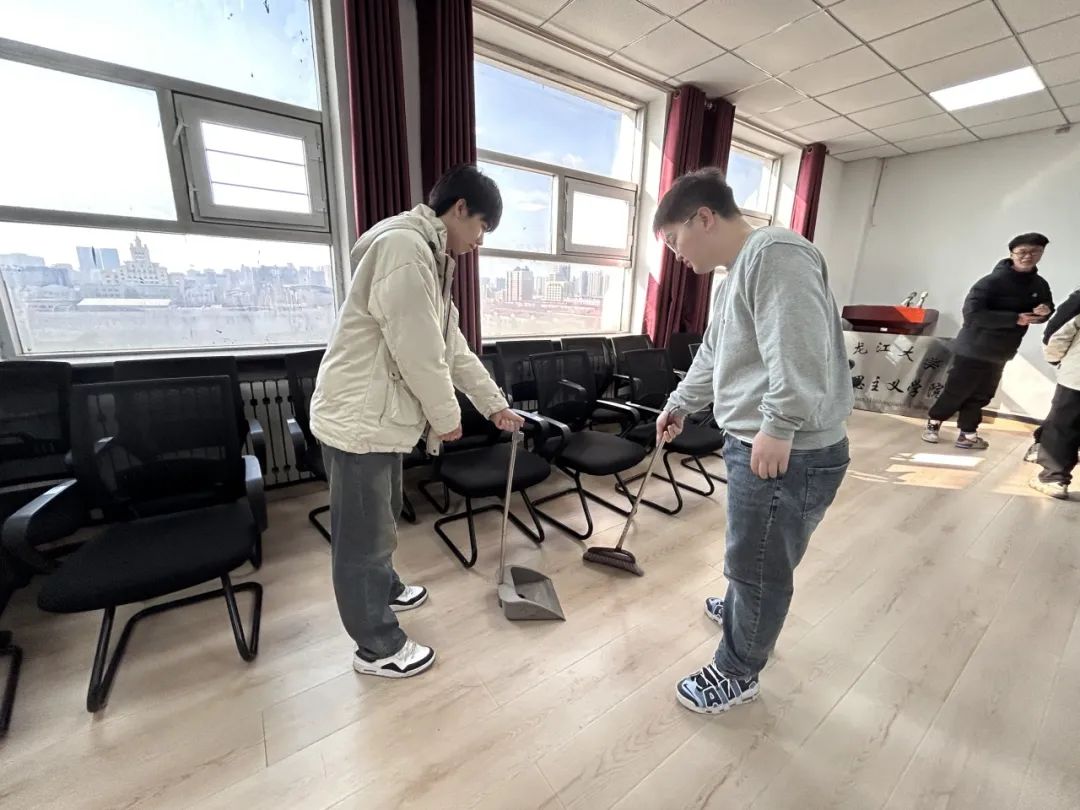 宣讲结束后,机电工程公司2021级员工党支部的同学们积极响应号召,开展了志愿服务活动。同学们分组前往公司办公室、会议室等场所,进行卫生清洁和环境整理。大家分工明确,有的擦拭桌椅,有的整理文件,有的清扫地面,用实际行动践行雷锋精神。